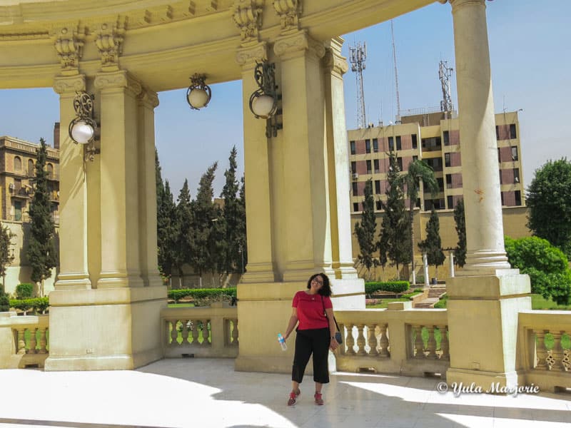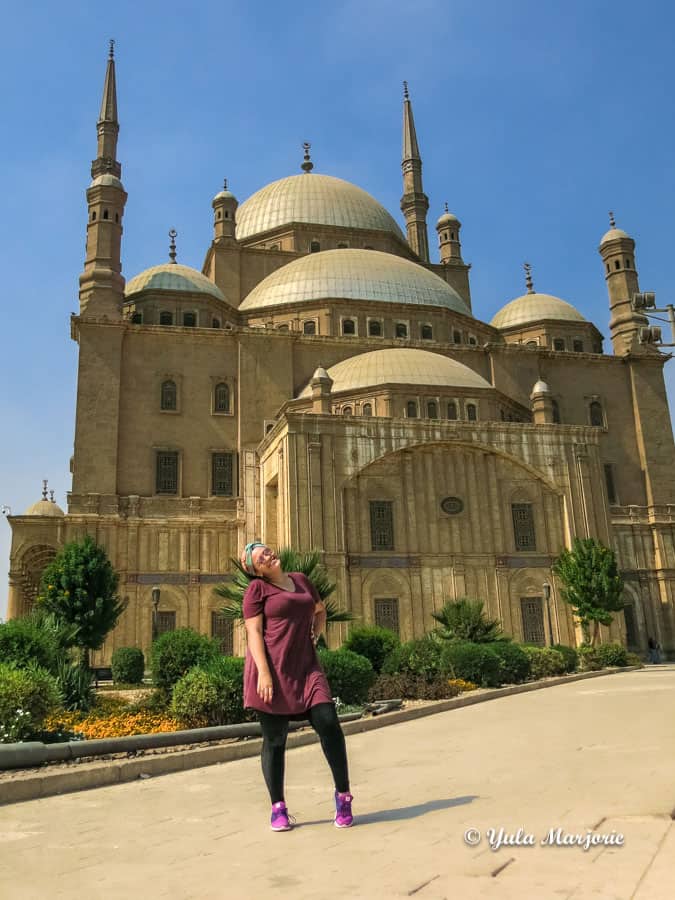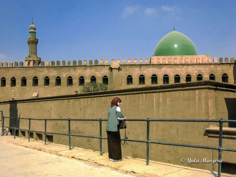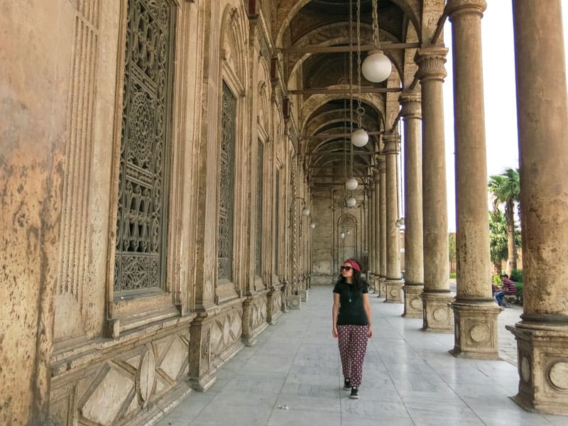Camiseta, calça leve estampada e tênis – na cabeça ou ombro – compôs meu look diário em Cairo – mesmo na Citadel! Foto: Laís Cecília Ribeiro