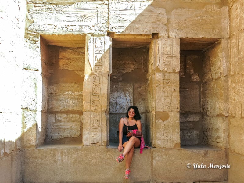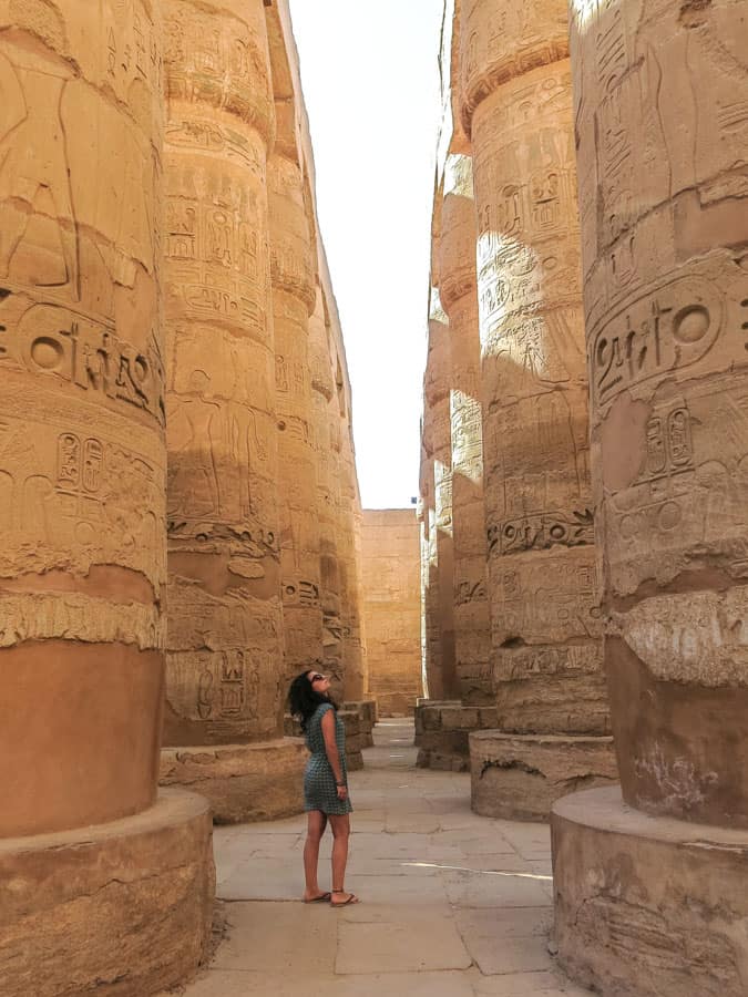 Sim, pode até levar um vestidinho para as visitas aos templos – essa foi no Karnak. Foto: Laís Cecília