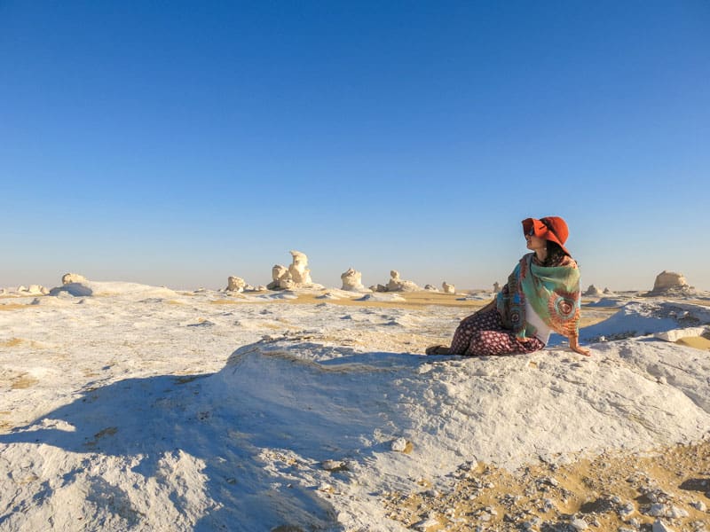 Porém, por mais tentador que possa ser para aproveitar e vestir-se o menos possível, o Sol é tão forte em alguns lugares que vale a pena se cobrir para se proteger. Chapéu e lenço foram essenciais na minha visita às Pirâmides, por exemplo. Além disso, se for acampar uma noite no deserto, leve uma jaqueta – que pode ser a mesma que você usou no aeroporto – porque a temperatura cai à noite