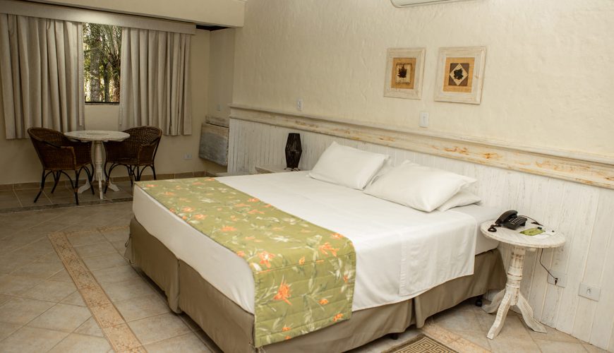 A suíte master é a categoria de entrada das acomodações, possuindo a tarifa mais acessível e todas as amenidades acima, comportando até três adultos.