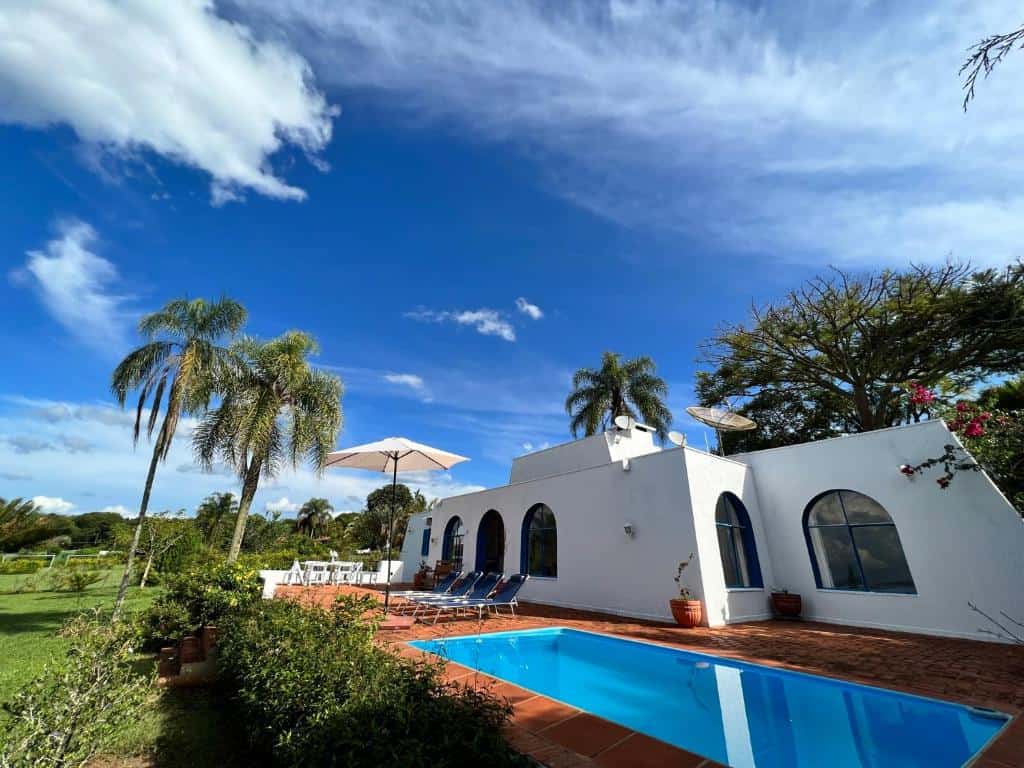Além de lindamente decorada a casa conta com uma piscina privativa, cozinha e área gourmet externa toda equipada e tem até video game.