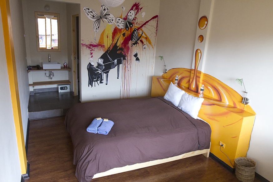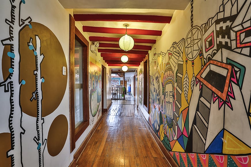 Outro ponto que chama bastante atenção é o estilo da decoração do hostel. Com suas paredes coloridas e muitas peças artísticas espalhadas por todos os lados, é impossível não se sentir contagiado pela alegria que o visual exala.