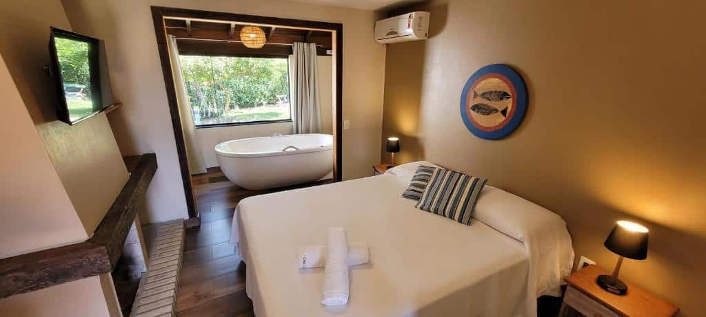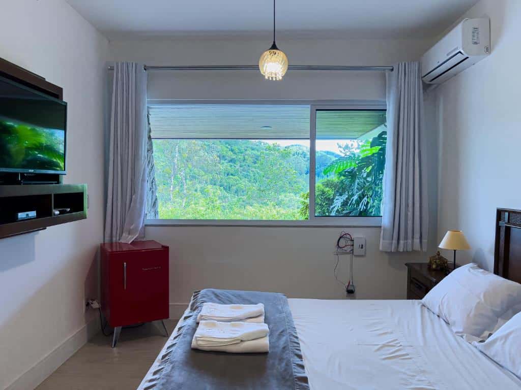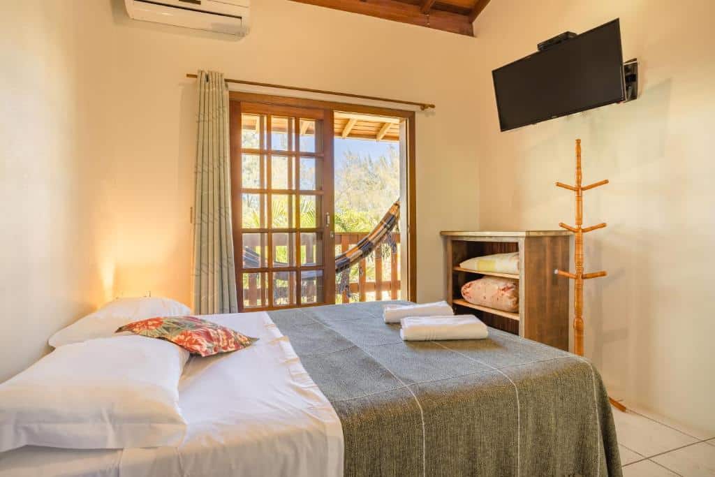 Pousada Recanto Forte: mais de 400 viajantes avaliaram essa pousada a 150 metros da Praia da Cachoeira do Bom Jesus e a consagraram com nota 9,4/10. Embora não seja exatamente na praia Brava, vale a indicação, porque é uma das hospedagens mais próximas de lá. Os quartos possuem smart TV grandes, camas de casal e queen e várias amenidades ótimas para descansar depois de um dia agitado no mar.