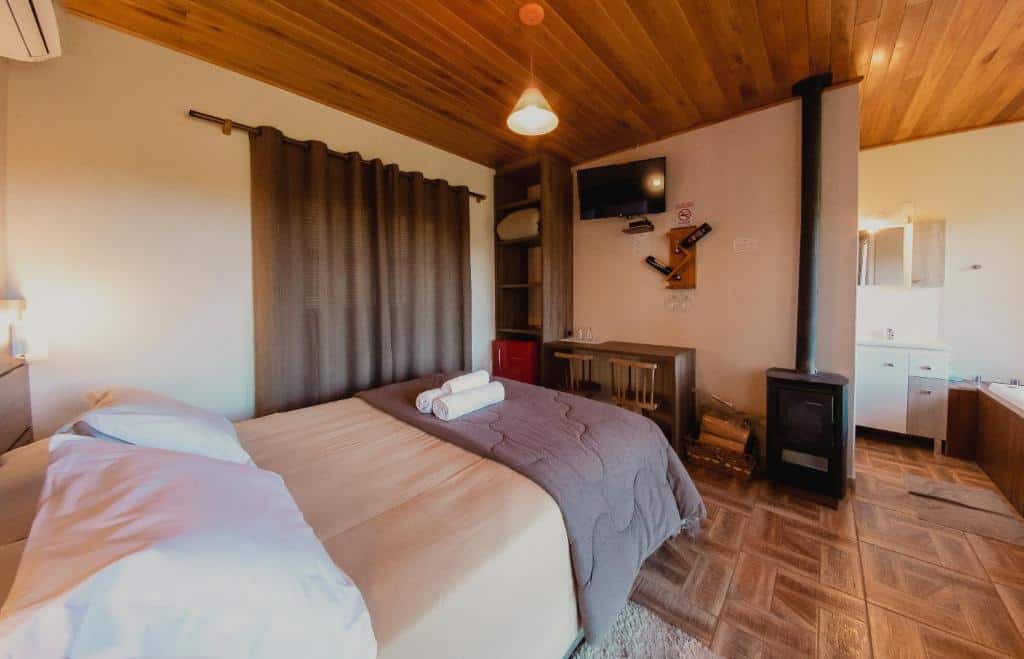 Pousada Lago da Colina: uma das opções mais bem avaliadas de onde ficar em Santa Catarina em Urubici, uma das principais cidades serranas do estado, a Pousada Lago da Colina tem quartos equipados com banheiras de hidromassagem, lareira, TV, camas grandes e um ambiente bem confortável para você quase nem querer sair do seu chalé. Esta opção já inclui café da manhã no valor da reserva e tem nota média de 9,2/10.