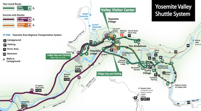 O Yosemite Valley não passa despercebido e costuma ser alvo de contemplação dos visitantes. A formação geológica, um canal com 1.220 metros de profundidade cercado por precipícios, é considerada uma joia do parque. Entre suas rochas naturalmente esculpidas vivem veados, esquilos e ursos negros, além de funcionários da área verde. Tudo isso justifica a infraestrutura local, com restaurantes, mercado, oficina de automóveis, alojamentos e campings.