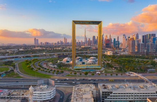 Que tal conhecer um mirante em formato de porta retrato? Esse é o Dubai Frame, que oferece uma vista incrível em uma construção diferenciada.