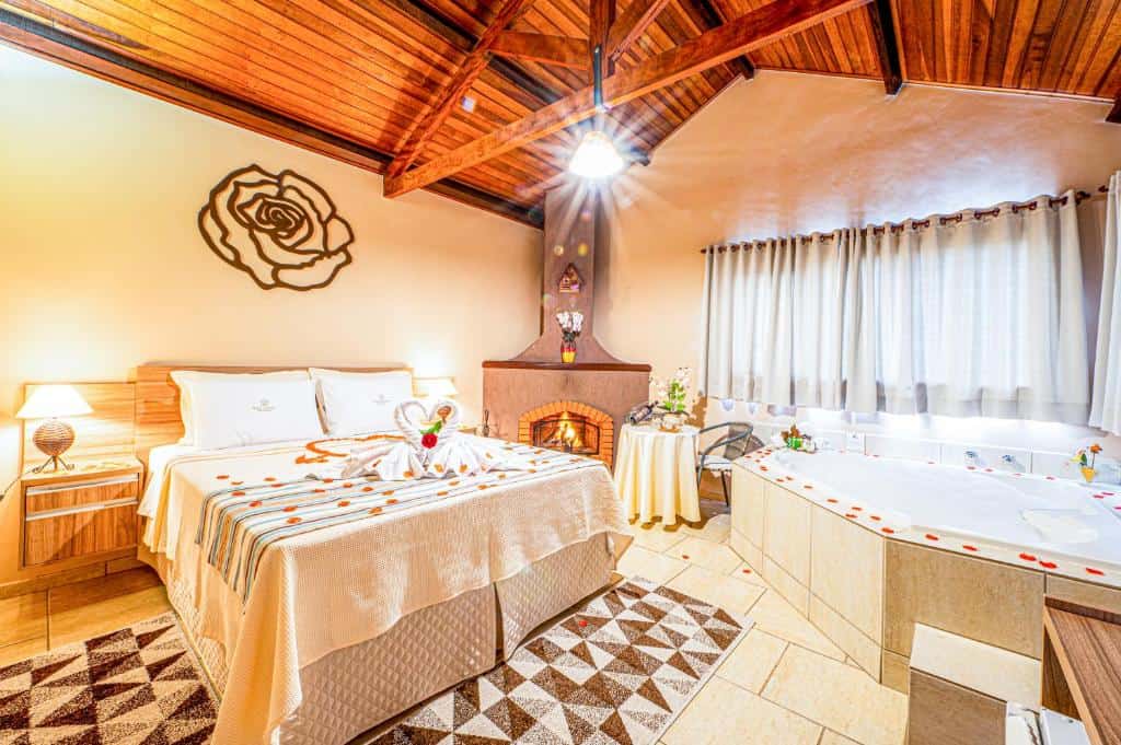 Pousada Villa Da Montanha: uma ótima opção para quem quer fazer uma viagem romântica e investir um pouco mais na hospedagem, a Pousada Villa da Montanha tem vários tipos de acomodações e alguns quartos oferecem banheira de hidromassagem e também lareira para você aproveitar! Com nota 9/10, esta pousada tem piscina ao ar livre e inclui no valor da diária (a partir de R$ 760) o café da manhã.